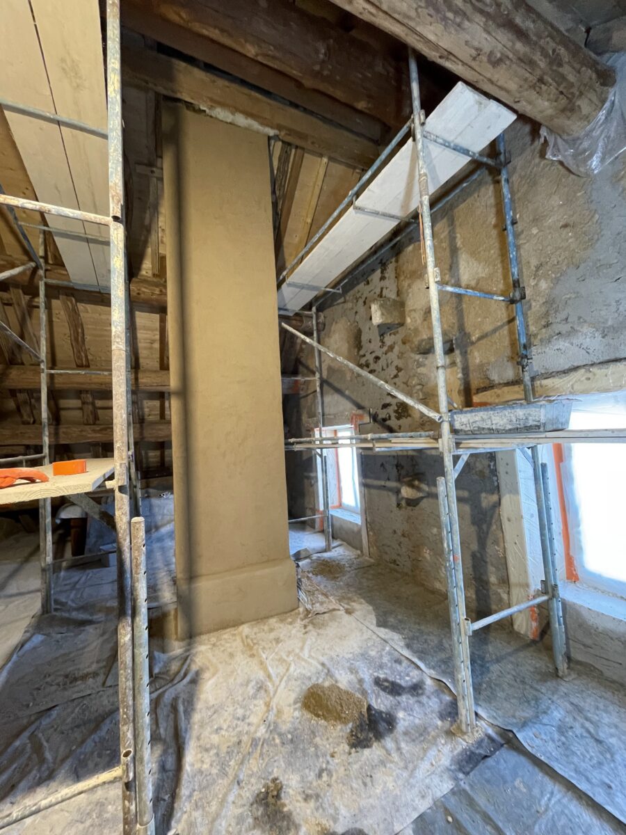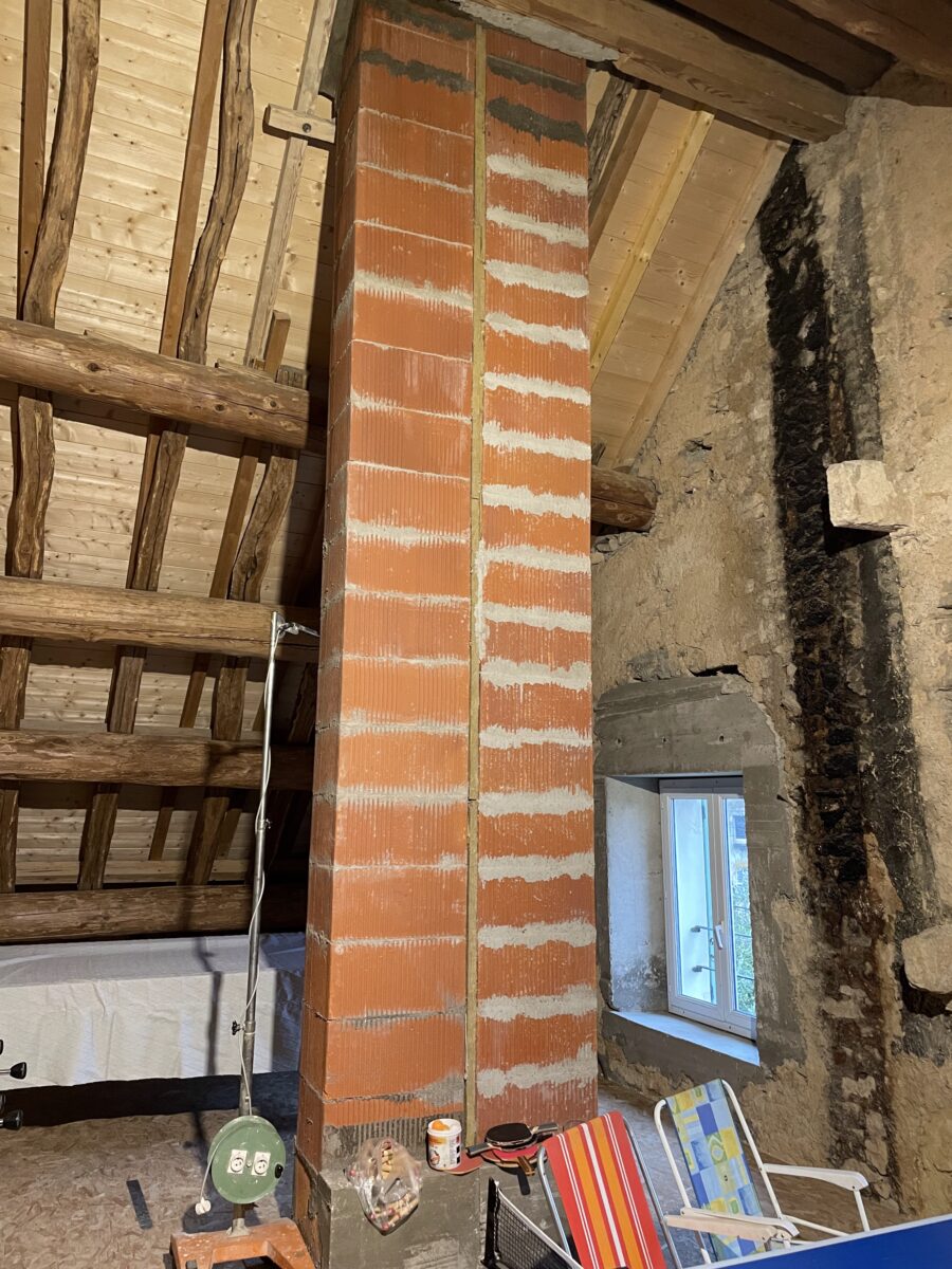 Sur les conduits de cheminée, c’est un enduit taloché/serré.