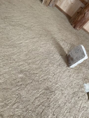 Mise en oeuvre d’un enduit jeté/recoupé sur le pignon du mur extérieur.