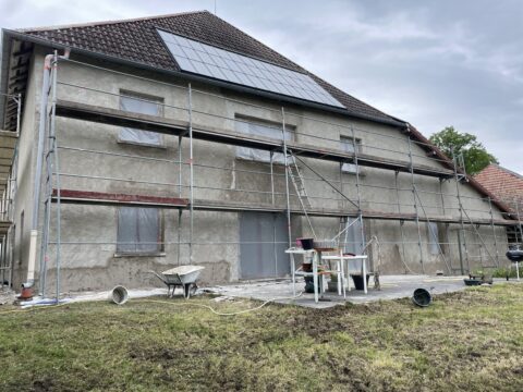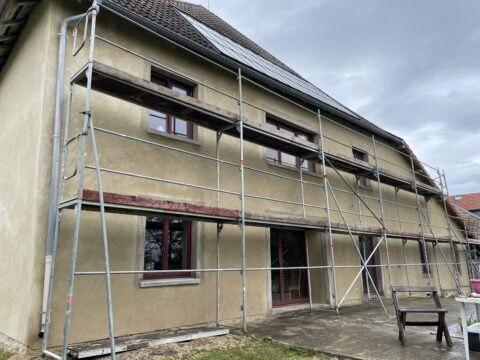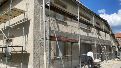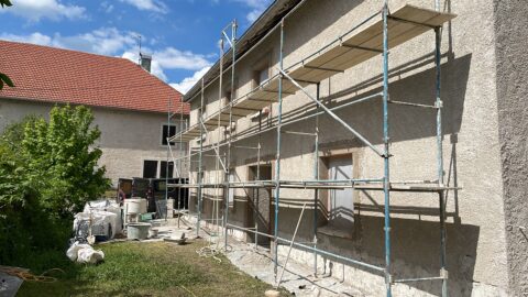 Enduit brossé sur une vieille ferme du Haut-Doubs