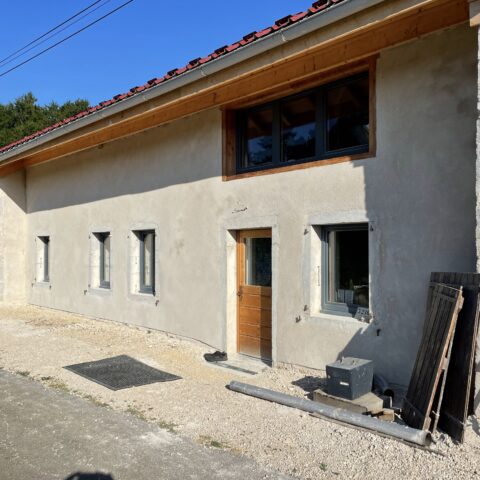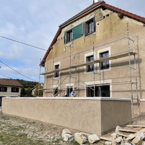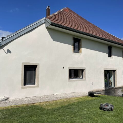 Enduits sur façades d’une maison en pierre du Haut-Jura