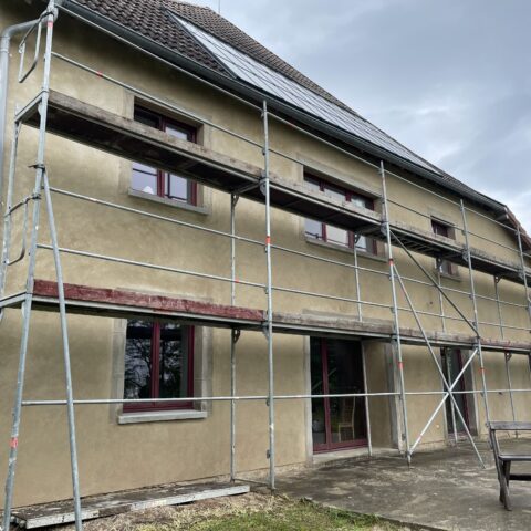 Enduit brossé sur une vieille ferme du Haut-Doubs