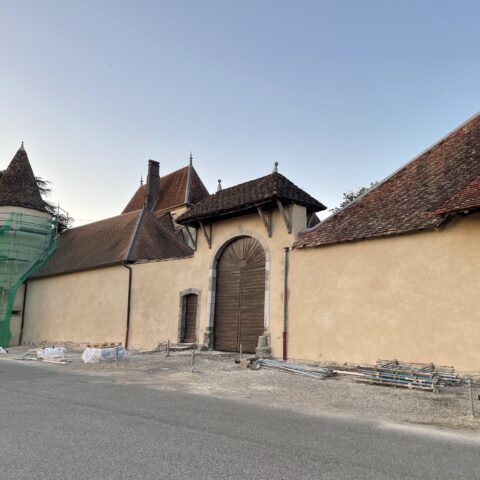 Enduits sur les murs d’enceinte et la tour ronde du château de Bonnay