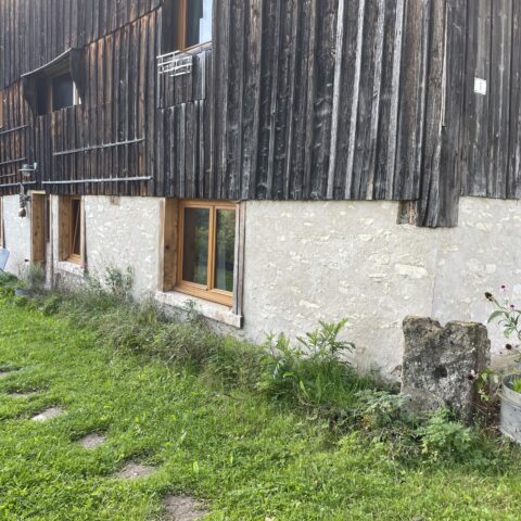 Enduit jeté/recoupé sur un ancien chalet d’alpage