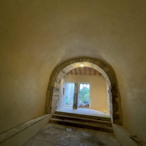 Enduits et badigeon dans la salle des fleurs de la cathédrale Saint Jean de Besançon