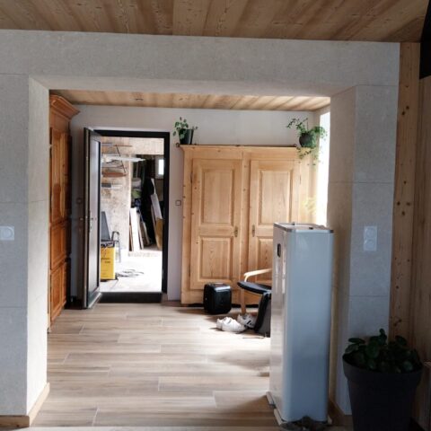 Enduits sur briques monomurs d’une ferme en rénovation complète